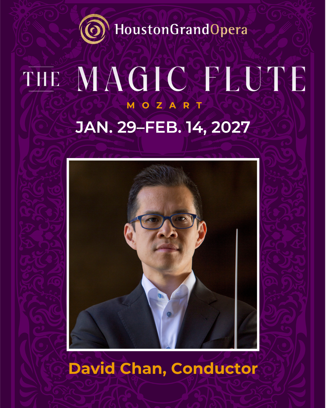 I am thrilled to be making my debut with Houston Grand Opera next season, conducting Mozart’s Die Zauberflöte (in German) with a starry case including Paul Appleby, Janai Brugger, Joshua Hopkins, and Aigul Khismatullina. Needless to say, this opera has a very special meaning to me after my many years and countless performances at the Met, and I’m deeply honored to have the chance to conduct it with this fantastic company in my new hometown.